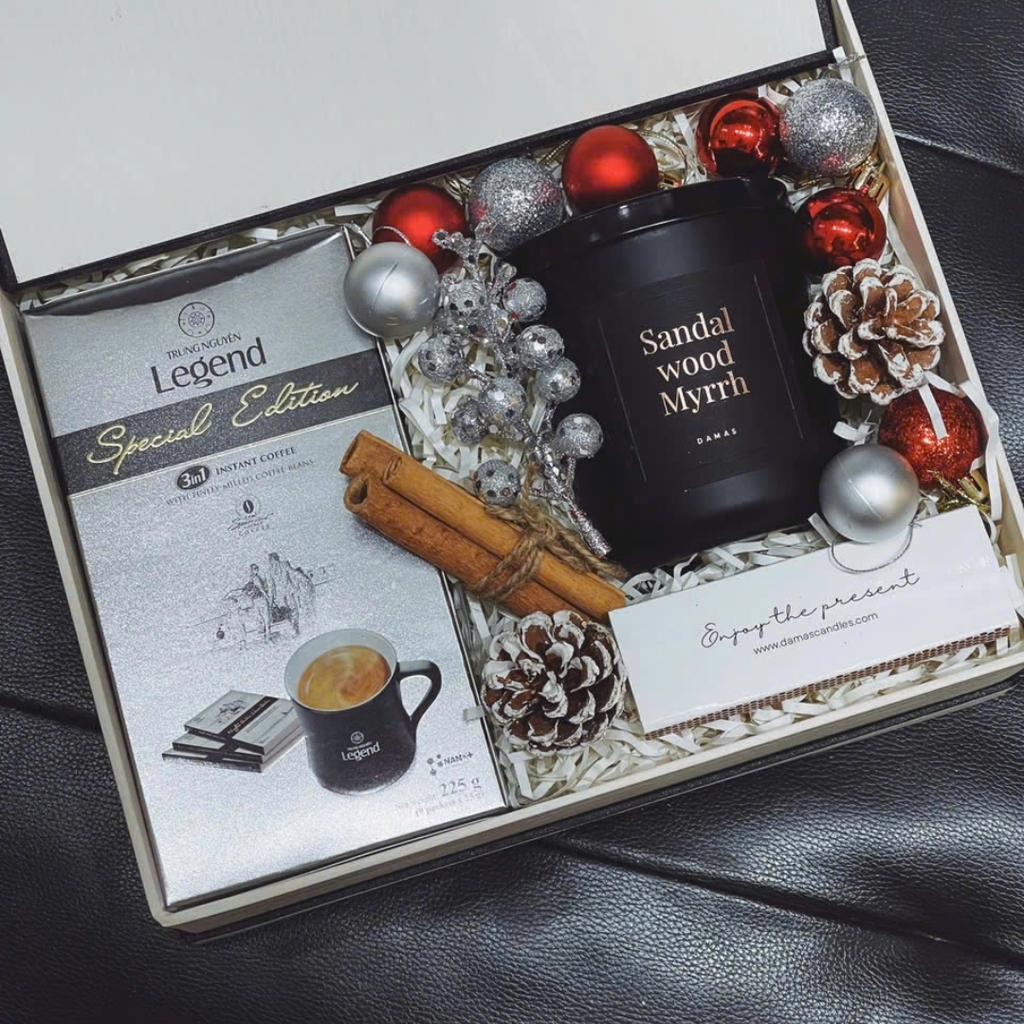 Set quà giáng sinh với nến thơm và cafe đặc sản Việt Nam dành cho bạn bè quốc tế.