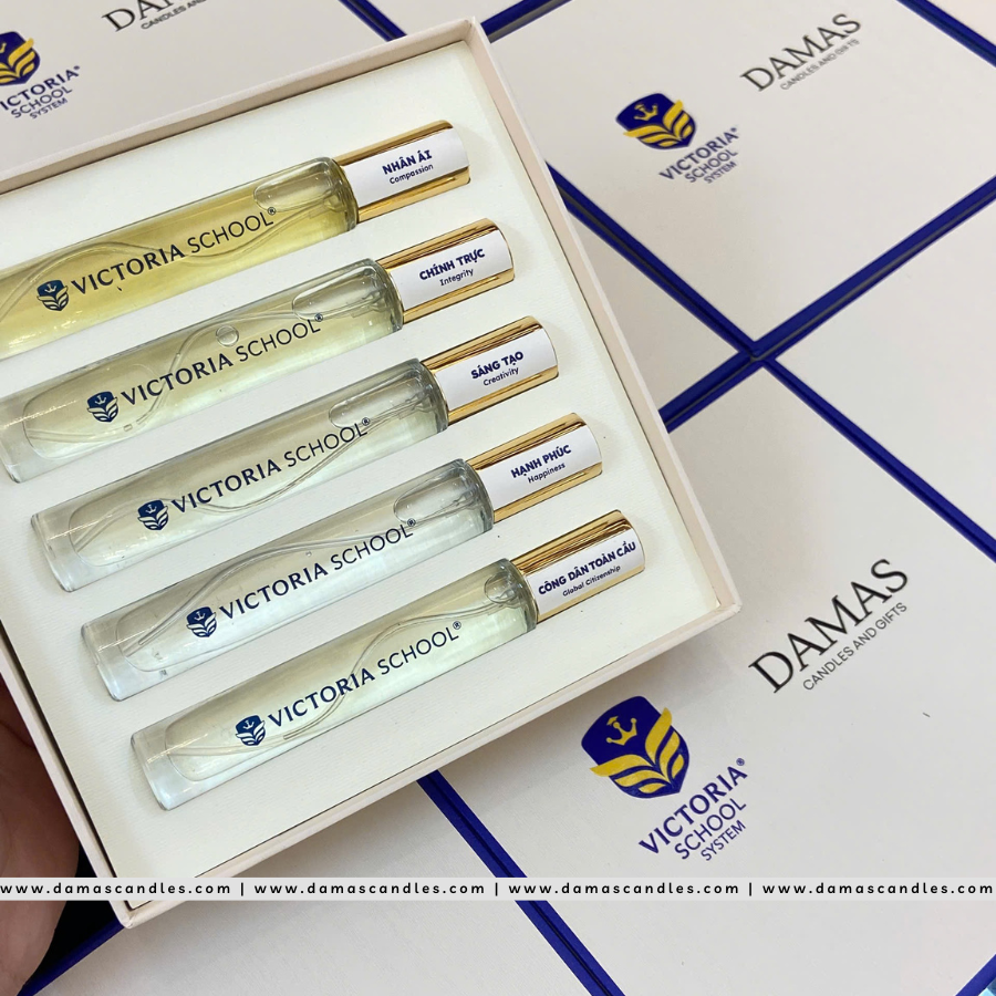 Set nước hoa in logo thương hiệu cho khách hàng Victoria School
