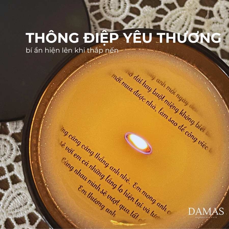 Ánh nến dịu dàng, mùi hương tinh tế và một thông điệp bất ngờ – đó là ba yếu tố tạo nên trải nghiệm xúc cảm trọn vẹn mà Damas mong muốn dành cho mỗi người nhận. Hãy để nến thơm thông điệp ẩn trở thành sứ giả thay bạn gửi gắm những điều khó nói, những lời yêu thương, tri ân hay động viên – theo cách nhẹ nhàng mà sâu sắc nhất.
