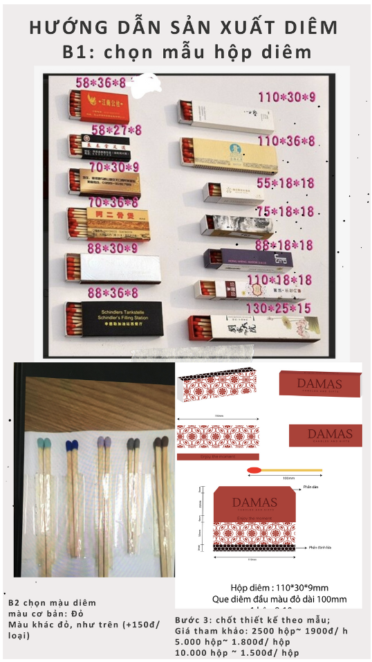 Damas nhận mẫu diêm từ 2.500 hộp/ 1 mẫu