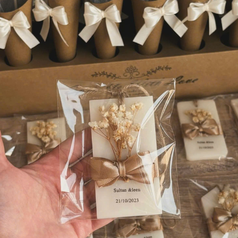 Set sáp thơm treo xe oto/ tủ quần áo hình chữ nhật trang trí hoa khô.