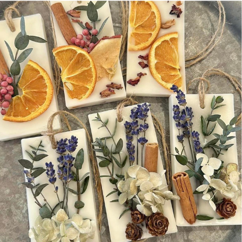 Set sáp thơm treo xe oto/ tủ quần áo hình chữ nhật trang trí hoa khô.
