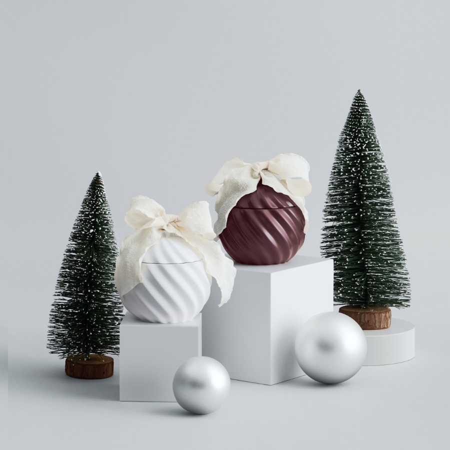 Hũ xi măng xoắn đỏ tượng trưng cho sức sống và đam mê, ẩn chứa bên trong là bản hương gỗ phương Bắc pha lẫn hương hoa tinh tế.